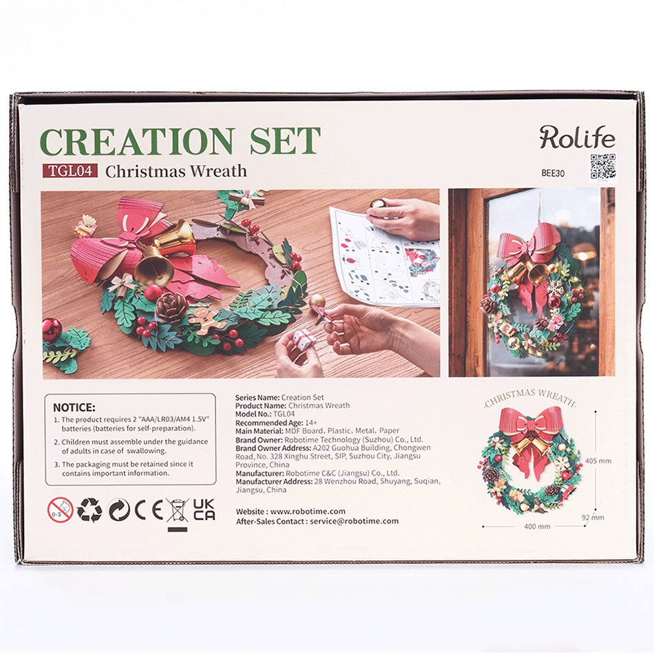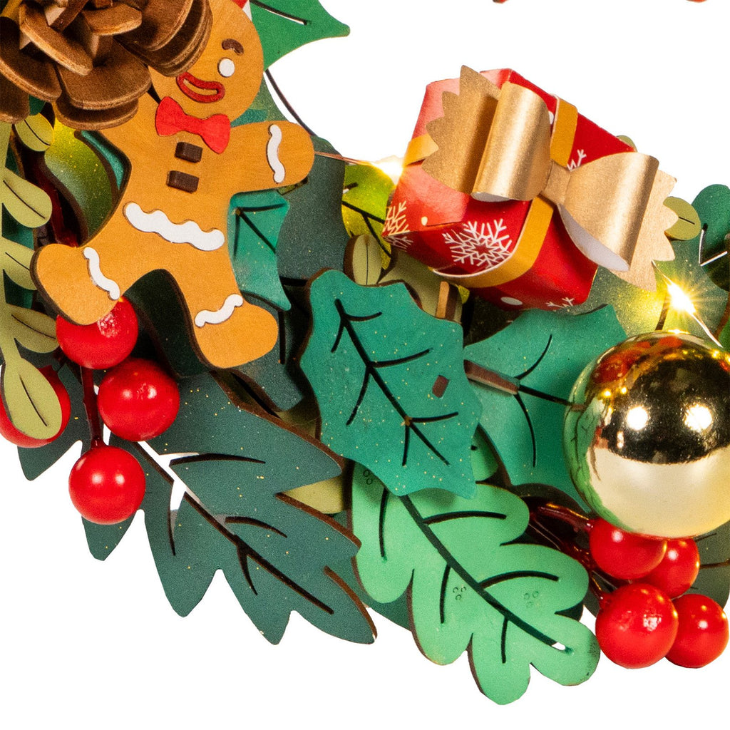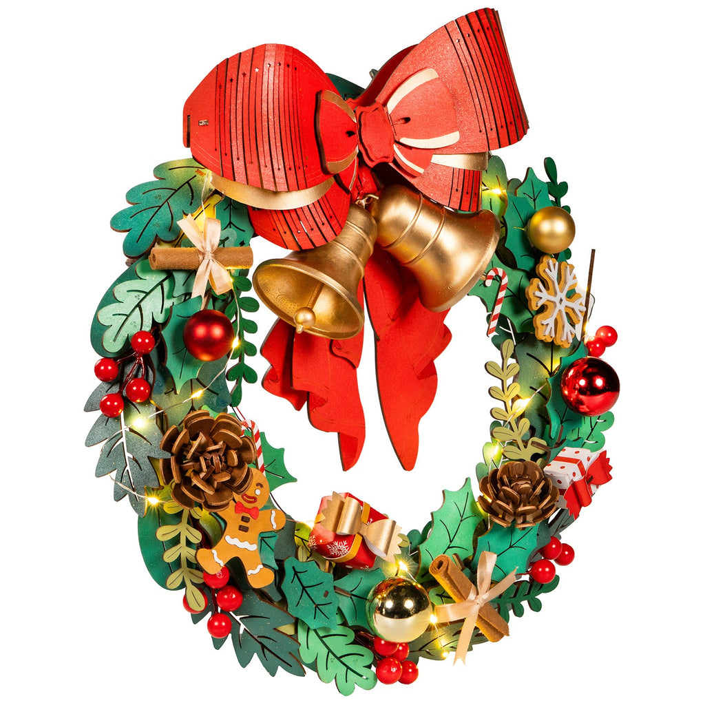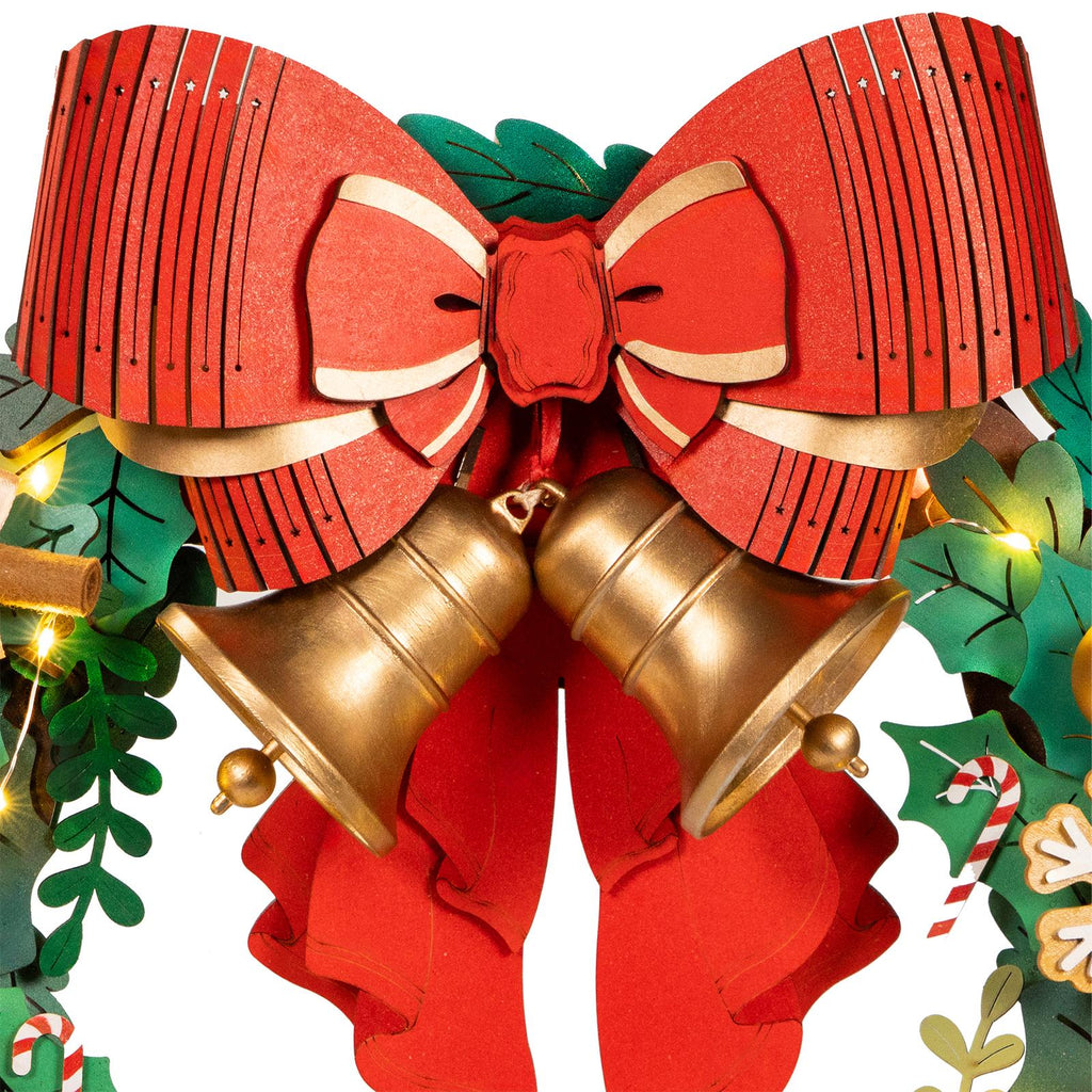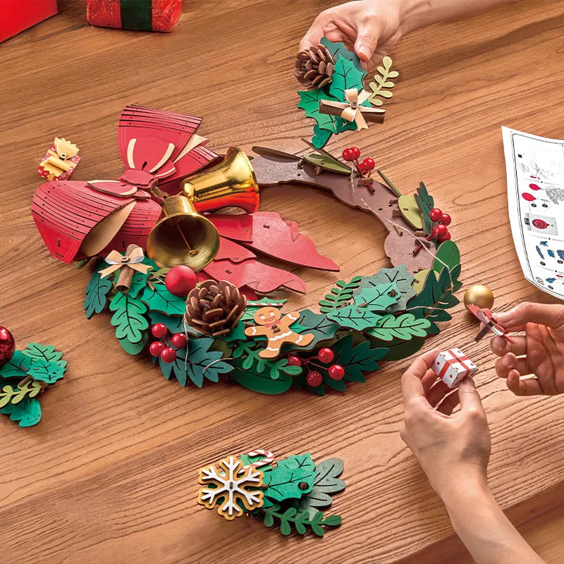 Fabriquez votre couronne de Noël ? Un projet DIY magique avec un kit en bois Robotime en rouge, or et vert !