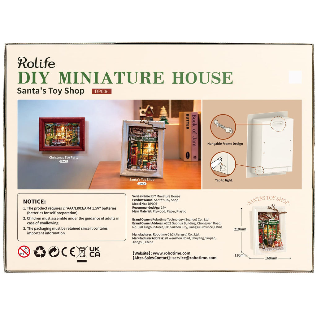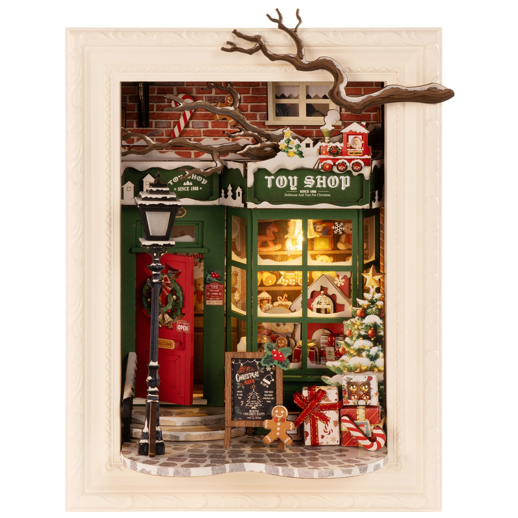 Ce décor féerique prend vie grâce au kit Santa’s Toy Shop de Robotime. Composé de 122 pièces, il mesure 168 x 110 x 218 millimètres une fois assemblé. Les pièces sont fabriquées à partir de matériaux solides et peuvent être facilement assemblées. Grâce à des autocollants et du ruban adhésif double face, vous ajoutez aisément les petits détails qui rendent l’ensemble festif et magique. Chaque élément est conçu avec soin et précision, des boules de Noël dans leur boîte à l’enseigne « Welcome » au-dessus de la porte.
