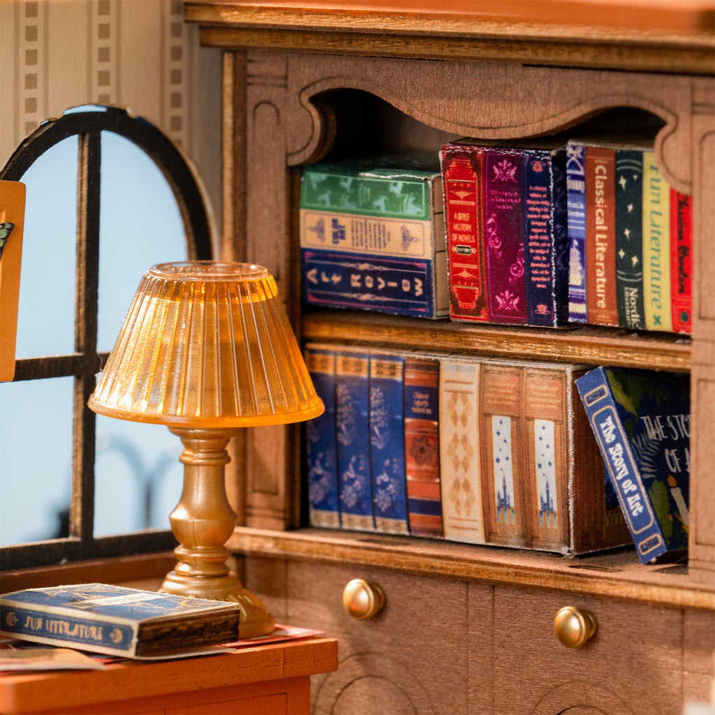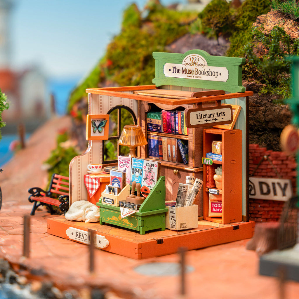 Réservez un café dans la librairie du kit de construction en bois de Robotime !