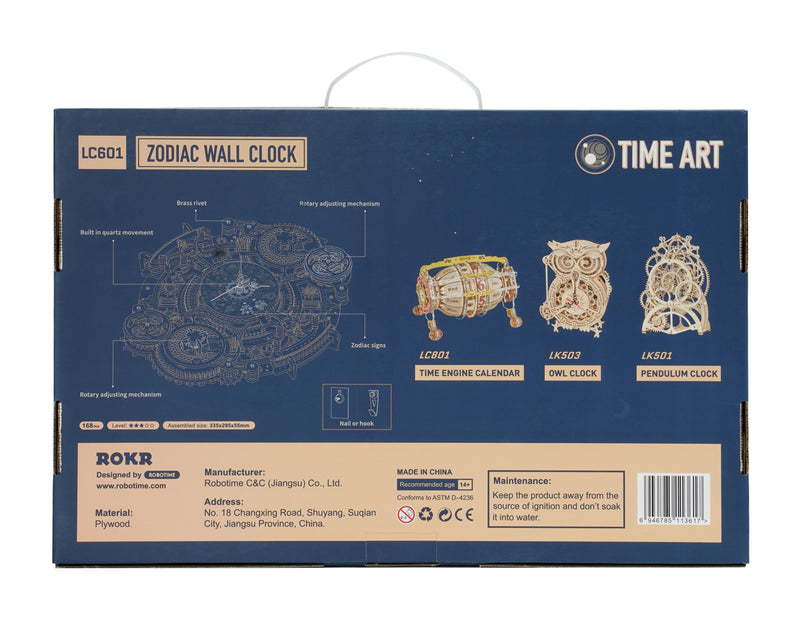 le steampunk prend la tête ! Voici un autre super kit de construction en bois de ROKR de Robotime ! Cette fois, nous avons conçu pour vous l'horloge murale baroque Zodiac. Comme son nom l'indique, les signes du zodiaque sont représentés sur cette horloge de bricolage. Il fonctionne effectivement avec la précision d'un quartz. Vous tournez vous-même la date, le mois et le signe du zodiaque mécaniquement à la main. L'apparence de cette horloge est cool. Il présente à la fois des engrenages robustes et des détails délicats, presque en dentelle, en filigrane. De plus, cette horloge présente des couleurs douces, ce qui en fait une décoration murale parfaite.