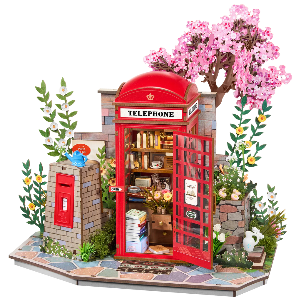 Je ziet het echt helemaal voor je, dat gietertje is natuurlijk van buurtbewoners die de planten rondom de telefooncel verzorgen. En binnen heeft iemand een tas thee staan terwijl hij waarschijnlijk verdiept is in een boek. En jij bouwt dit! En dan het moment dat je klaar bent … zet jij hem op je bureau, in de kast of geef je hem cadeau? Heb je de smaak te pakken? Ontdek dan ook het Sakura Tree House, de Sakura Journey en de Robotime Steam Journey.