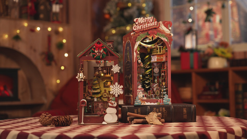 Samen kerstdecoraties maken, naar een nieuw niveau getild, book nook kerstinterieur Robotime