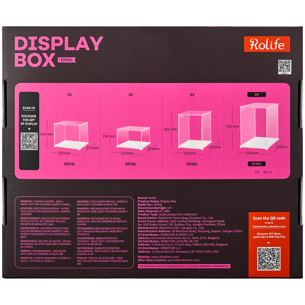 De montage is zo simpel dat je je bijna afvraagt of je wel iets goed doet. Beschermfolie eraf, zes onderdelen in elkaar klikken en klaar. Binnen vijf minuten staat alles stevig op zijn plek. Moeilijkheidsgraad één ster, dus zelfs als je twee linkerhanden hebt, komt dit helemaal goed. Het heldere acrylglas laat elk detail perfect zien en de witte kunststof bodem zorgt ervoor dat jouw model echt in het middelpunt staat. Met een formaat van 250 millimeter bij 249 millimeter bij 310 millimeter hoog past de vitrine vrijwel overal op de kast.