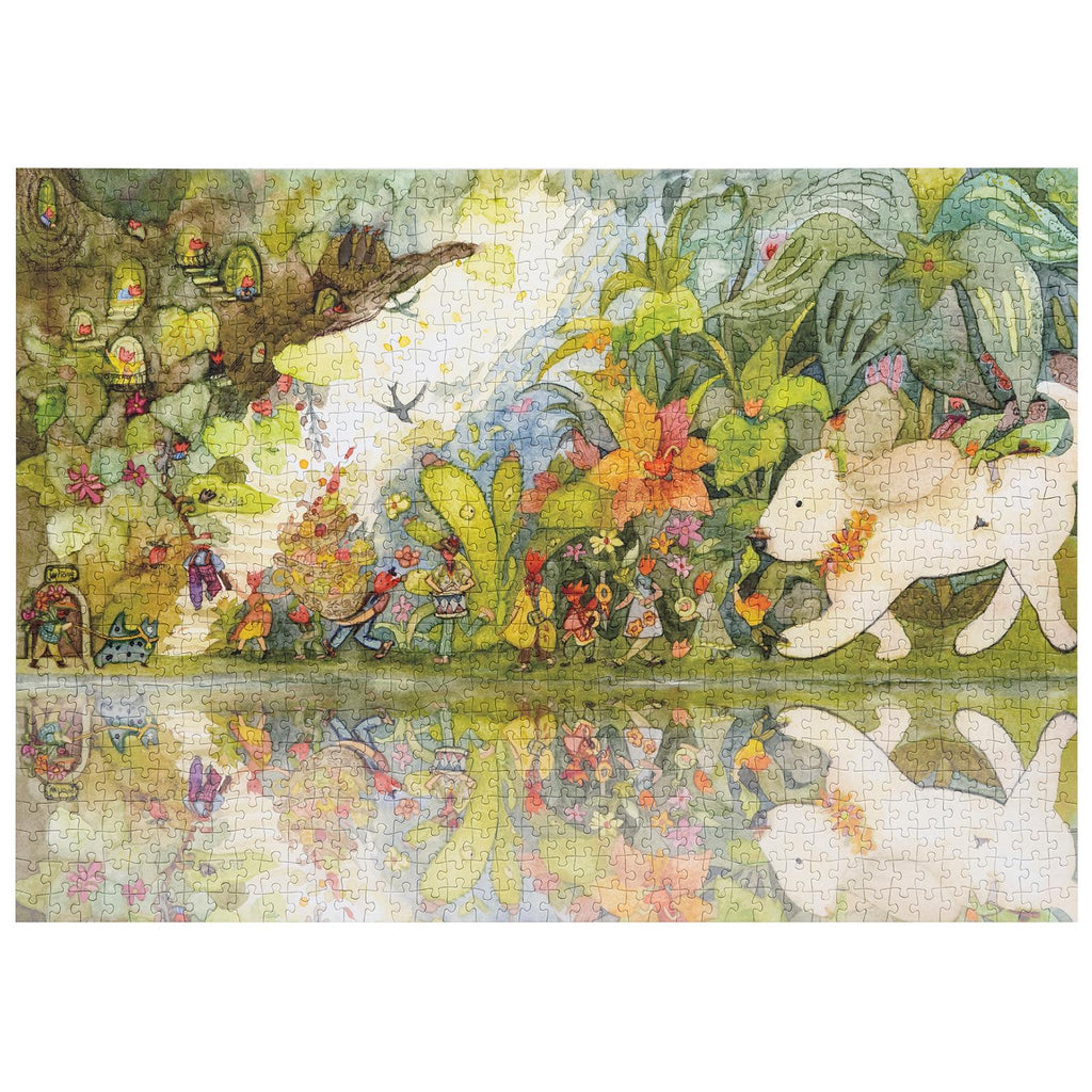 Het leggen van de bosfeest-puzzel is een feestje op zich! Met 1000 stevige kartonnen stukjes en een afmeting van 500 bij 700 millimeter geeft deze puzzel ongeveer 10 uur pure concentratie en ontspanning. De spiegeling van de hond in de plas vormt een extra uitdaging, waardoor je aandacht voor detail echt tot zijn recht komt. Elk puzzelstukje past perfect en het puzzelen blijft overzichtelijk door de kleuren op de achterzijde. Na het leggen is de puzzel perfect om in te lijsten en je woonkamer op te leuken. Kun jij alle kabouters van het feest terugvinden?