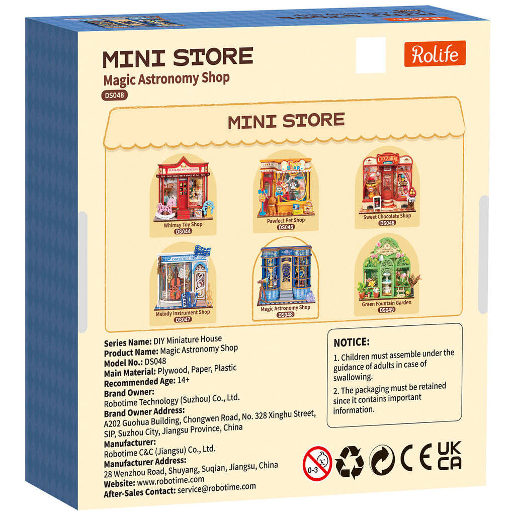 Deze bouwkit Magic Astronomy Shop maakt deel uit van de Rolife Ministore serie