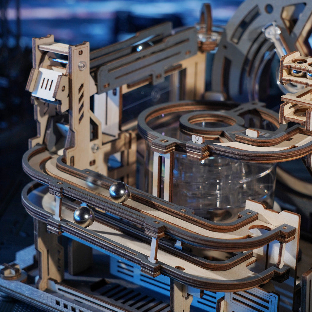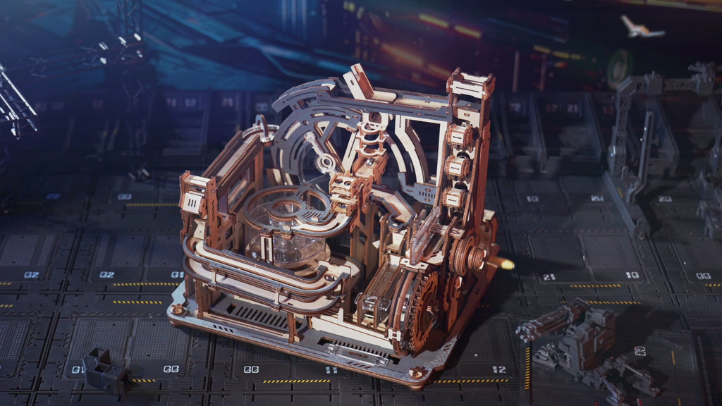 Stel je dit eens voor, een gezellige zondagmiddag, een lekker wijntje en een houten bouwpakket voor volwassenen dat gewoon smeekt om in elkaar gezet te worden. Geen gewone bouwset, maar een koninklijke knikkerbaan van Robotime en ROKR. Dit verfijnde model de Spaceport, is de Rolls Royces onder de knikkerbanen! En jij kunt hem zelf knutselen. Elke centimeter van dit bouwpakket voor volwassenen straalt jouw vakmanschap uit, van de verticaal bewegende heftrappen tot de adembenemende versnellingsspiralen. Het is niet alleen een knikkerbaan, maar een kunstwerk in beweging. Hoe je hem maakt?